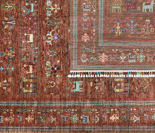 Waziri Earthy Brown Hand Knotted Rug - 2.00*1.56
