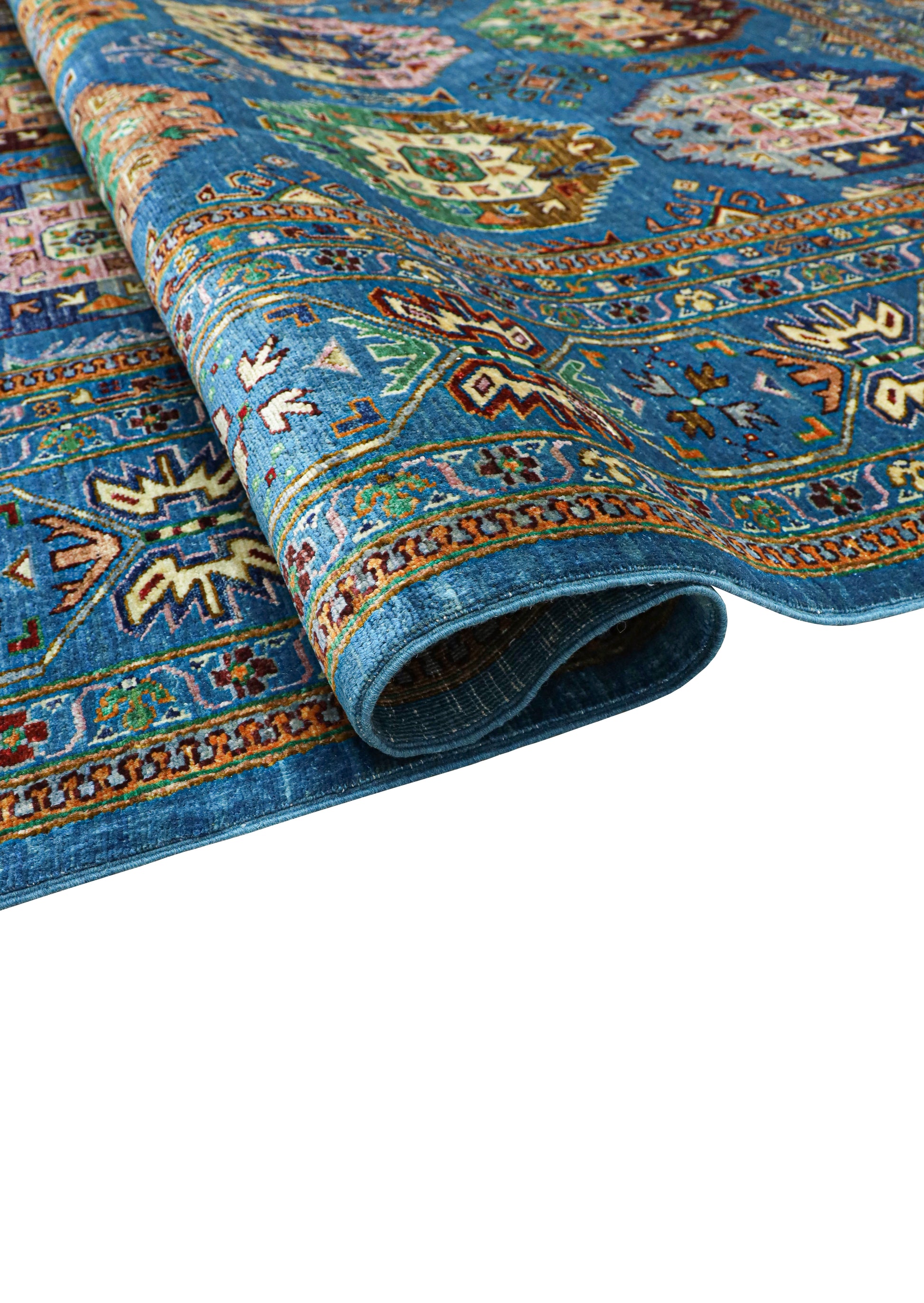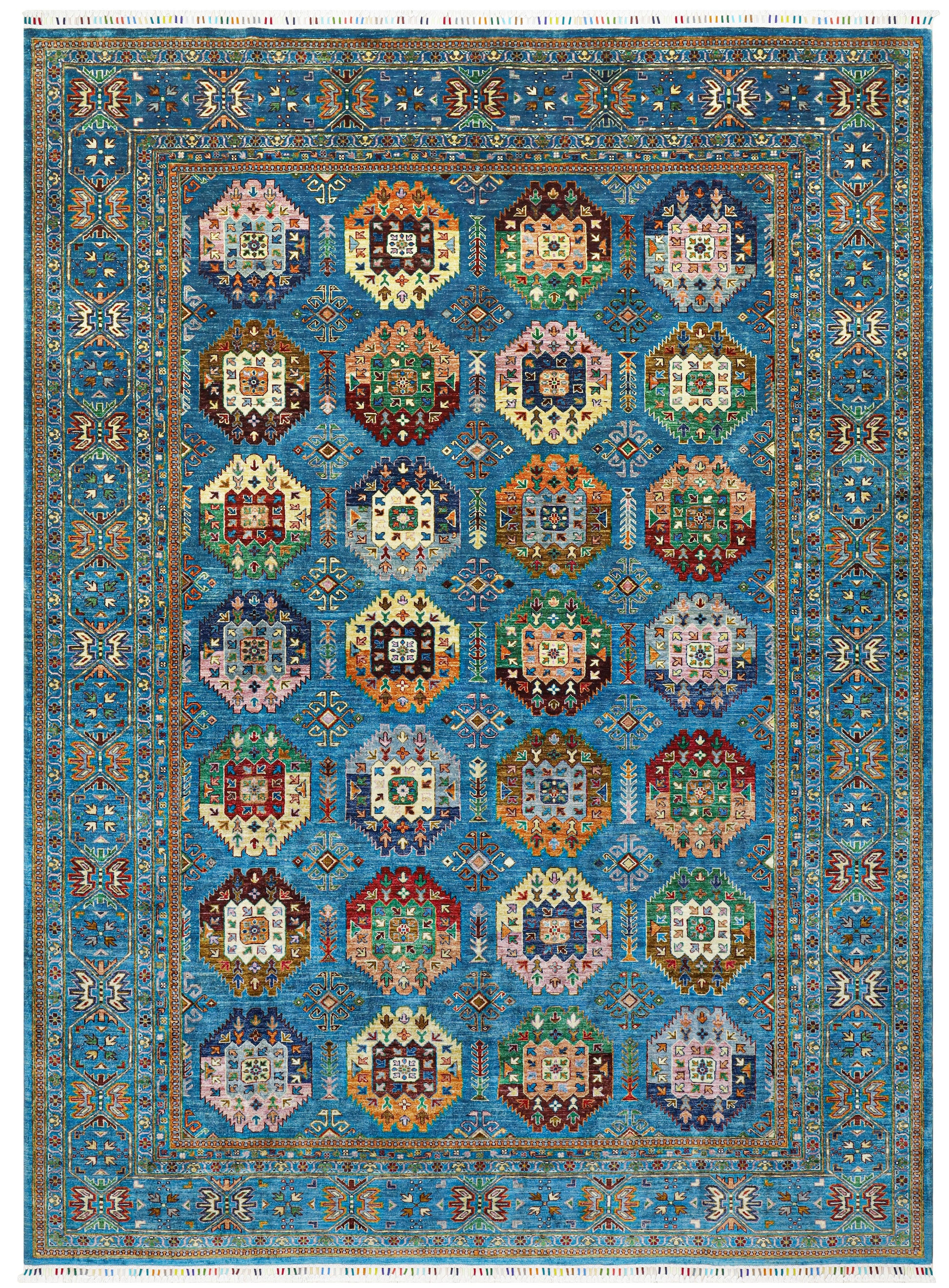 Expertly hand-knotted by skilled artisans, this rug is made from premium hand-spun wool, ensuring both softness and durability. The knot density ranges from 120,000 to 160,000 knots per m², signifying the high level of precision and artistry involved. The traditional Afghan knotting technique not only enhances durability but also creates a plush, luxurious texture that feels incredible underfoot.